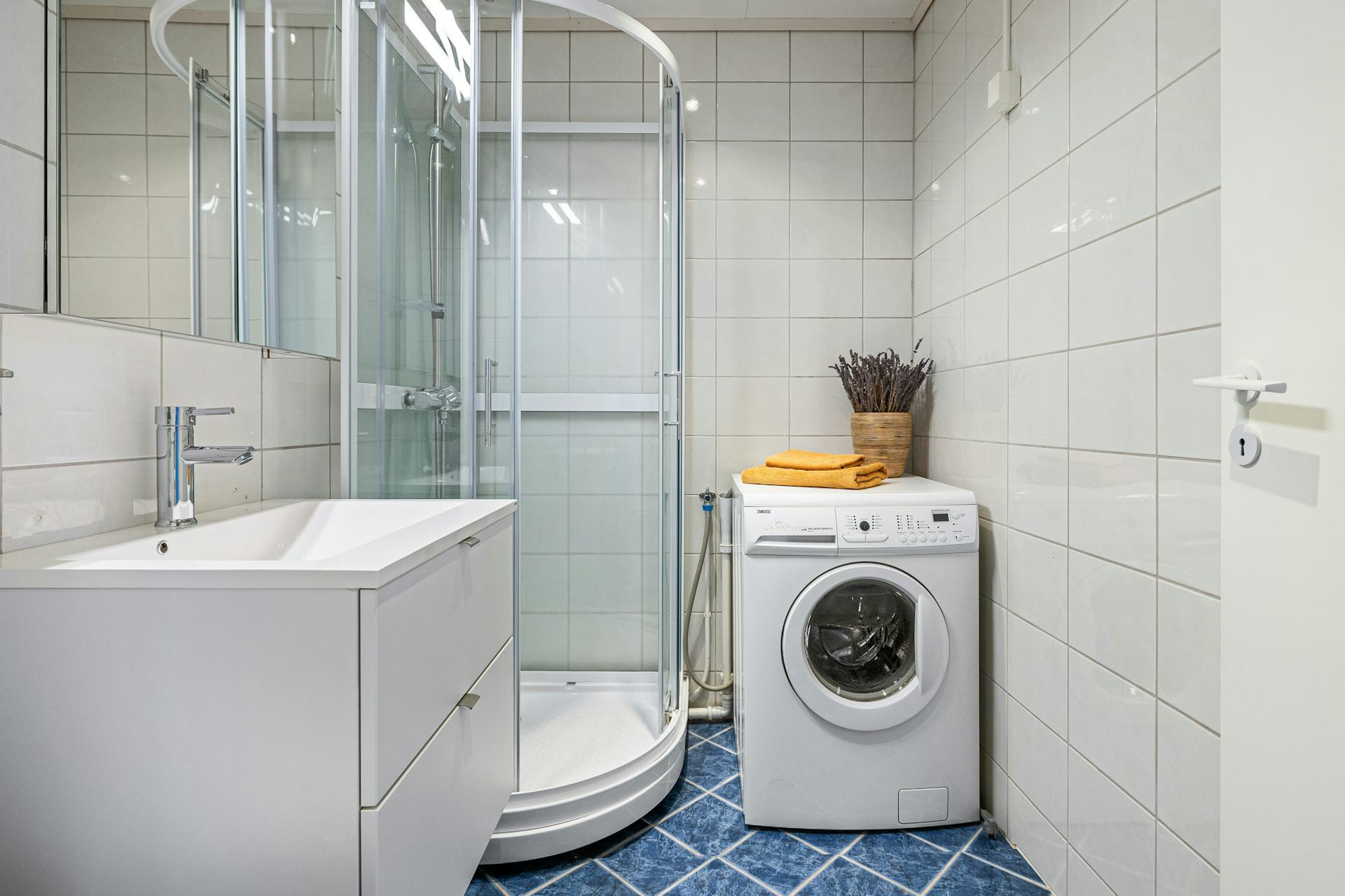 - Frontbetjent vaskemaskine og tørretumbler – De er lettere at betjene fra siddende position end topbetjente modeller. Placeres de side om side i en passende højde, bliver det nemt at flytte tøjet fra den ene til den anden.